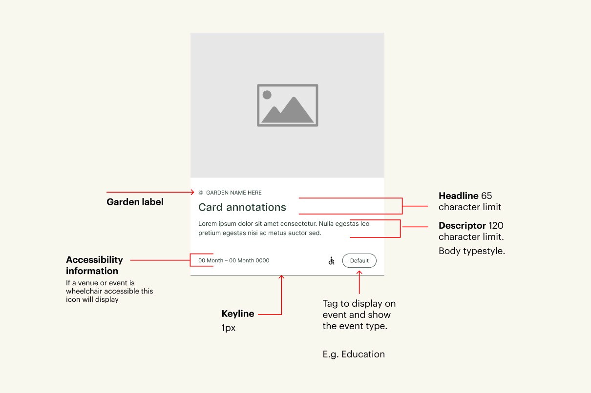 Shared sections such as Venues & Spaces and Discover & Learn house content from all garden locations. This approach invites users to enter the site through pathways aligned to their immediate needs, while exposing them to a richer and more diverse range of content across all gardens.
