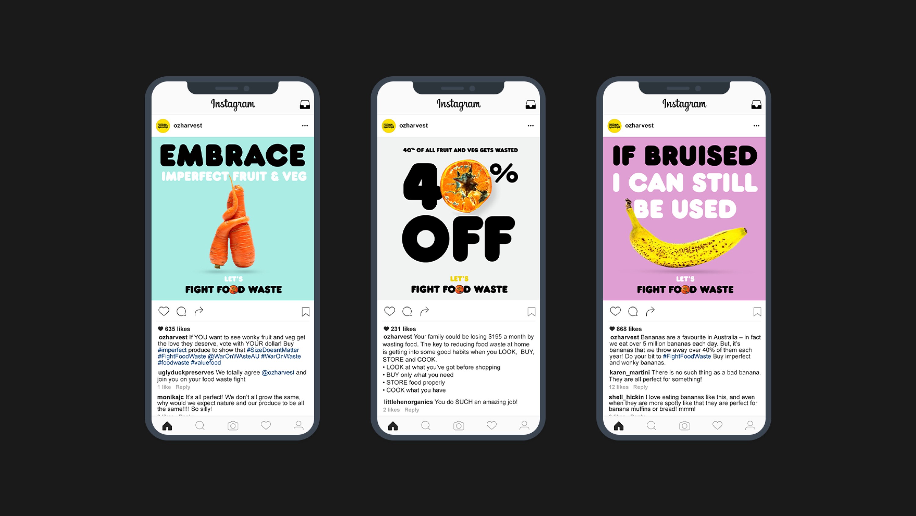 A campaign message and identity were needed in the wake of Dan Goldberg’s “Food Fighter” documentary on OzHarvest founder, Ronni Kahn. On seeing the film, what might people do next? A clear call-to-action, related to, and distinct from, the OzHarvest identity.