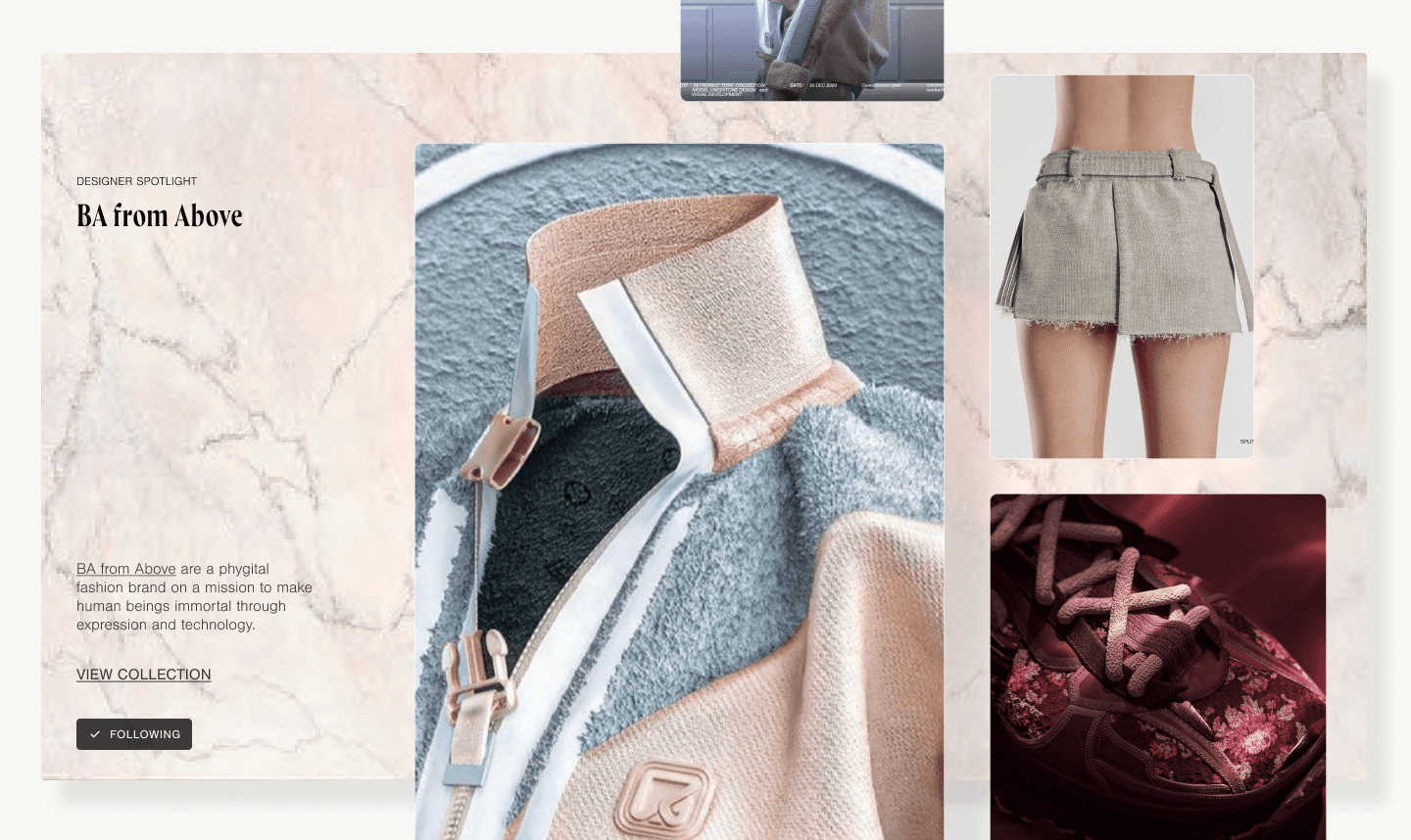 Developed the visual treatment for the platform, exploring typography, layout systems and interaction patterns to create a luxury digital aesthetic that balanced fashion culture with the emerging visual language of Web3.