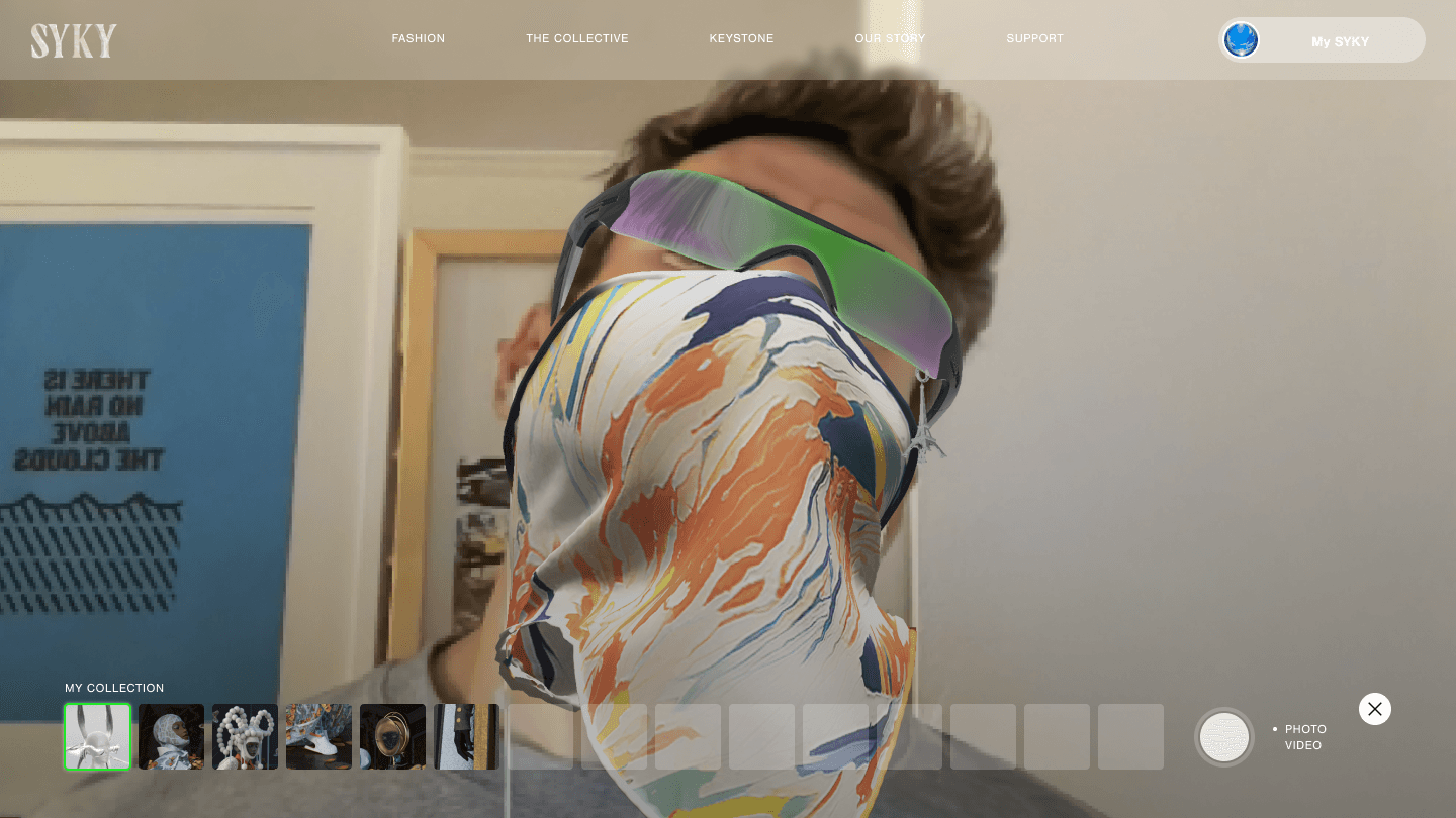 Created AR wearable experiences in collaboration with Snapchat, using Lens Studio to import 3D fashion assets and transform digital artwork into interactive lenses, allowing users to wear and share SYKY pieces in augmented reality.