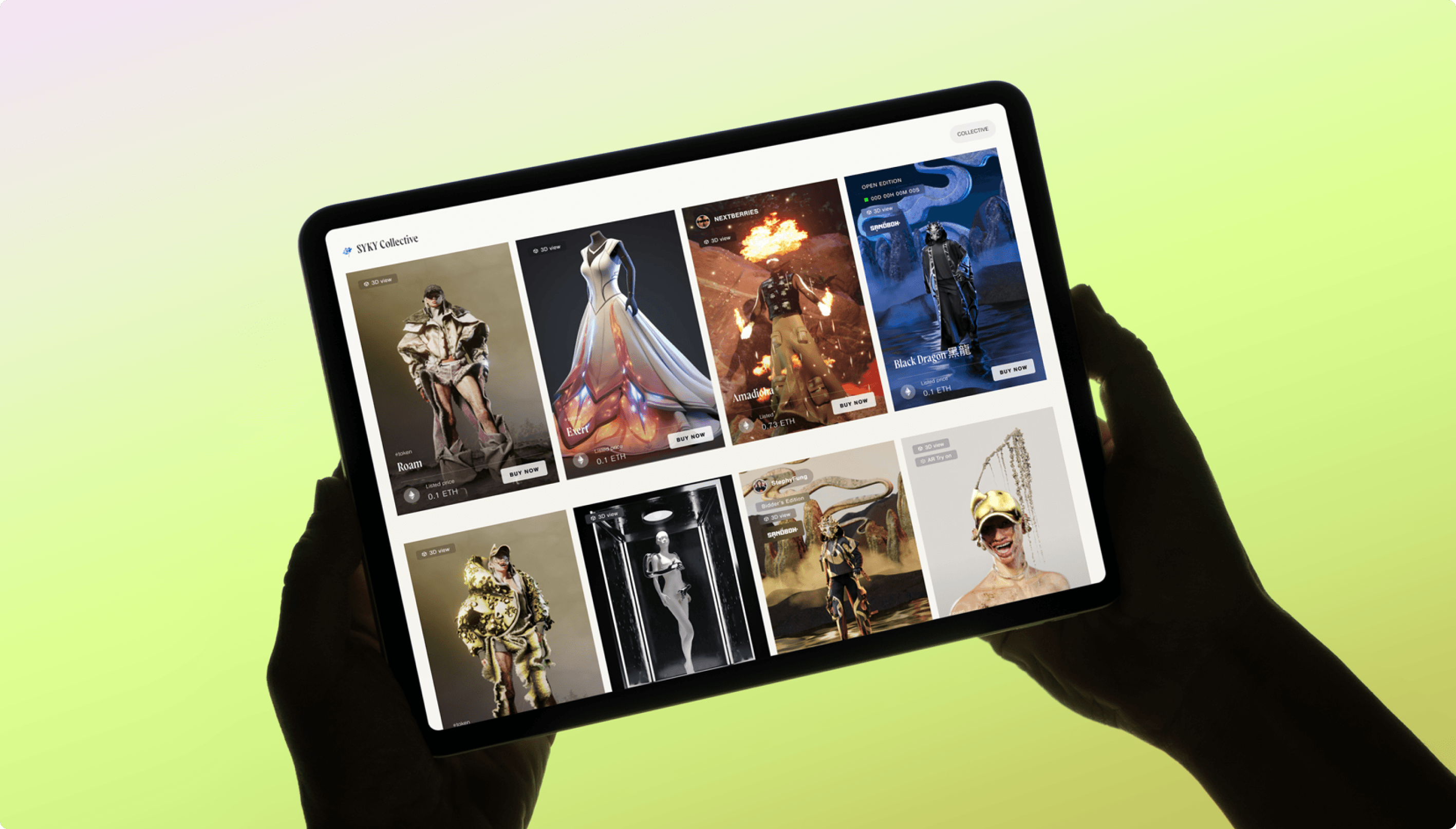 Designed customisable NFT gallery experiences that allowed collectors to curate, organise and display their digital fashion pieces, transforming ownership into a personal exhibition space and reinforcing identity within the SYKY ecosystem.